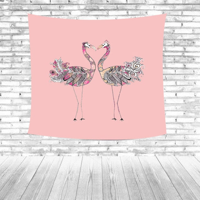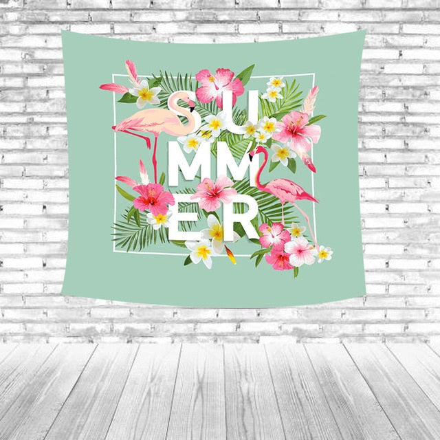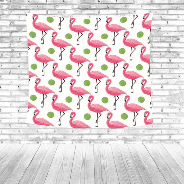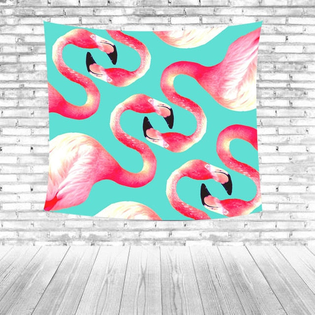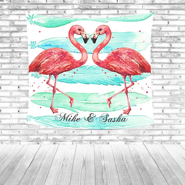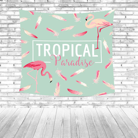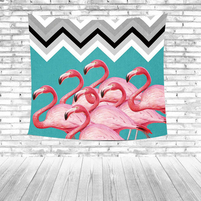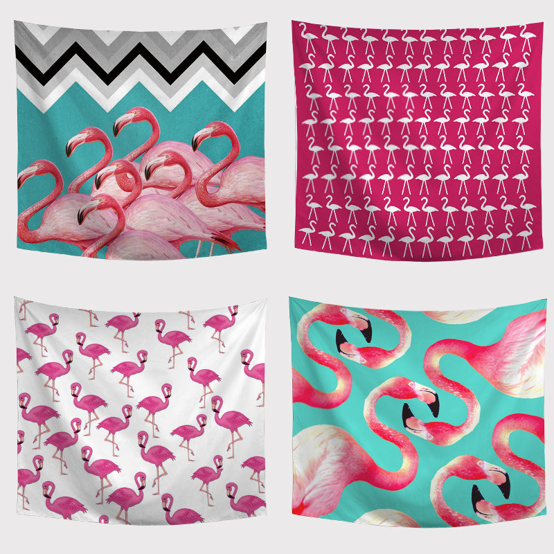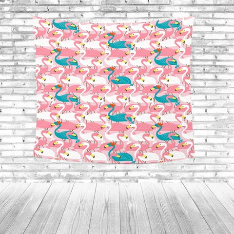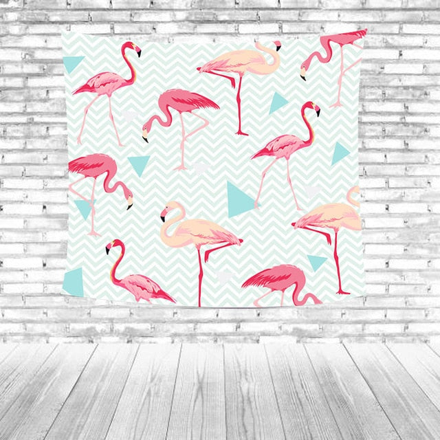 Temizlik Tipi: Kırmızı flamingolar Yeşil yapraklar Çizgili Mavi arka plan